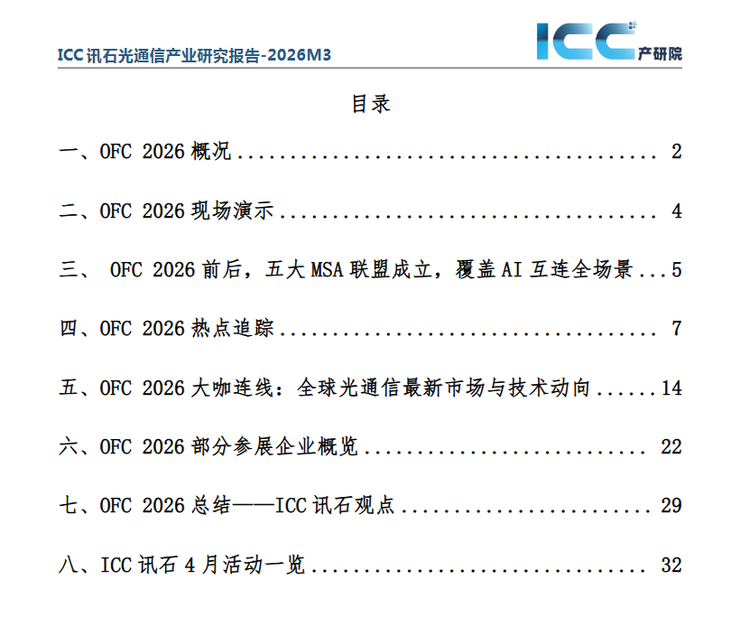 ICC訊石《 OFC 2026核心洞察:光通信向 AI 算力賽道的全面轉(zhuǎn)型》專題報(bào)告為企聯(lián)薈會(huì)員專享!歡迎加入訊石企聯(lián)薈,獲取完整版專題報(bào)告及更多會(huì)員專屬資源。請(qǐng)聯(lián)系:0755-82960080。