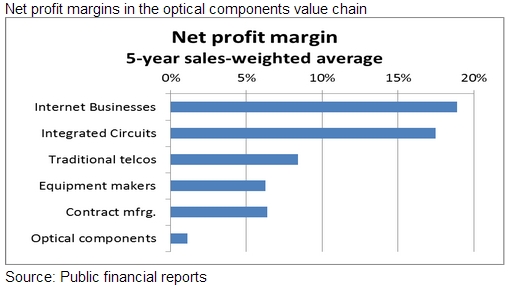光器件制造商的利潤率最低。