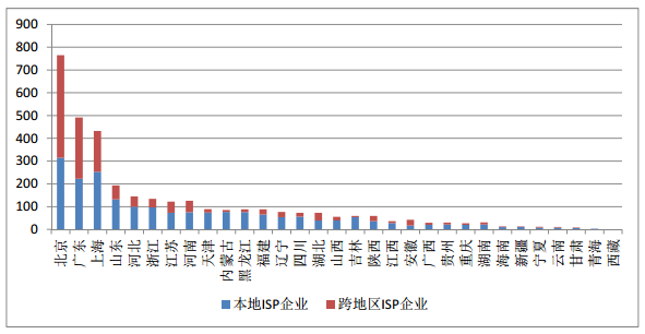 跨地區(qū) ISP 持證企業(yè)數(shù)占全國 ISP 持證企業(yè)總數(shù)的 41.0%,遠(yuǎn)高于跨地區(qū)持證企業(yè)數(shù)在全國持證企業(yè)數(shù)中的占比 16.9%。