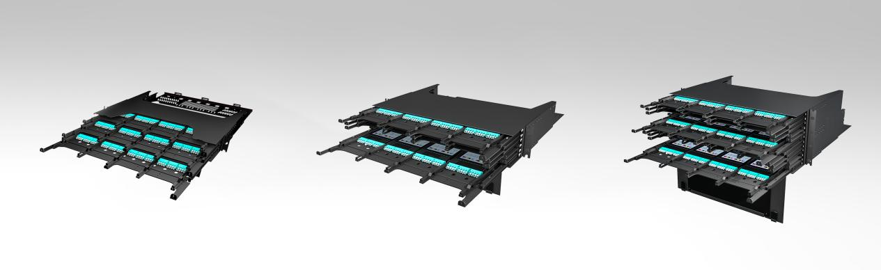 1. 最高支持1U-144芯LC連接和4U-576芯LC連接,從而可以在2.2m的網(wǎng)絡(luò)配線機(jī)架實(shí)現(xiàn)MP0-LC 6480芯的密集配線,實(shí)現(xiàn)空間高效利用。