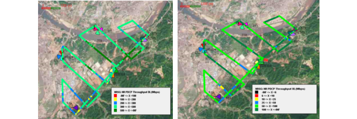 在低空通信方案中,通過對現(xiàn)網(wǎng)網(wǎng)絡(luò)進(jìn)行優(yōu)化,精細(xì)調(diào)整的波束配置和組網(wǎng)設(shè)計(jì),實(shí)現(xiàn)低空網(wǎng)絡(luò)快速部署,在平均站間距3Km下,實(shí)測低空100m高度下行速率達(dá)到451Mbps,上行速率113Mbps。低空300m高度下行速率達(dá)到325Mbps,上行速率74Mbps。邊緣速率滿足高清4k視頻回傳需求,且經(jīng)實(shí)測驗(yàn)證,其最大拉遠(yuǎn)距離超過10KM,展現(xiàn)了卓越的通信性能與覆蓋能力。通過智能波束配置的優(yōu)化調(diào)整,低空通信網(wǎng)絡(luò)即便面對復(fù)雜多變的地形與氣候條件,亦能確保信號傳輸?shù)倪B續(xù)性與穩(wěn)定性,極大地提升低空飛行的安全性與可靠性,還實(shí)現(xiàn)對更廣闊區(qū)域的精準(zhǔn)覆蓋。