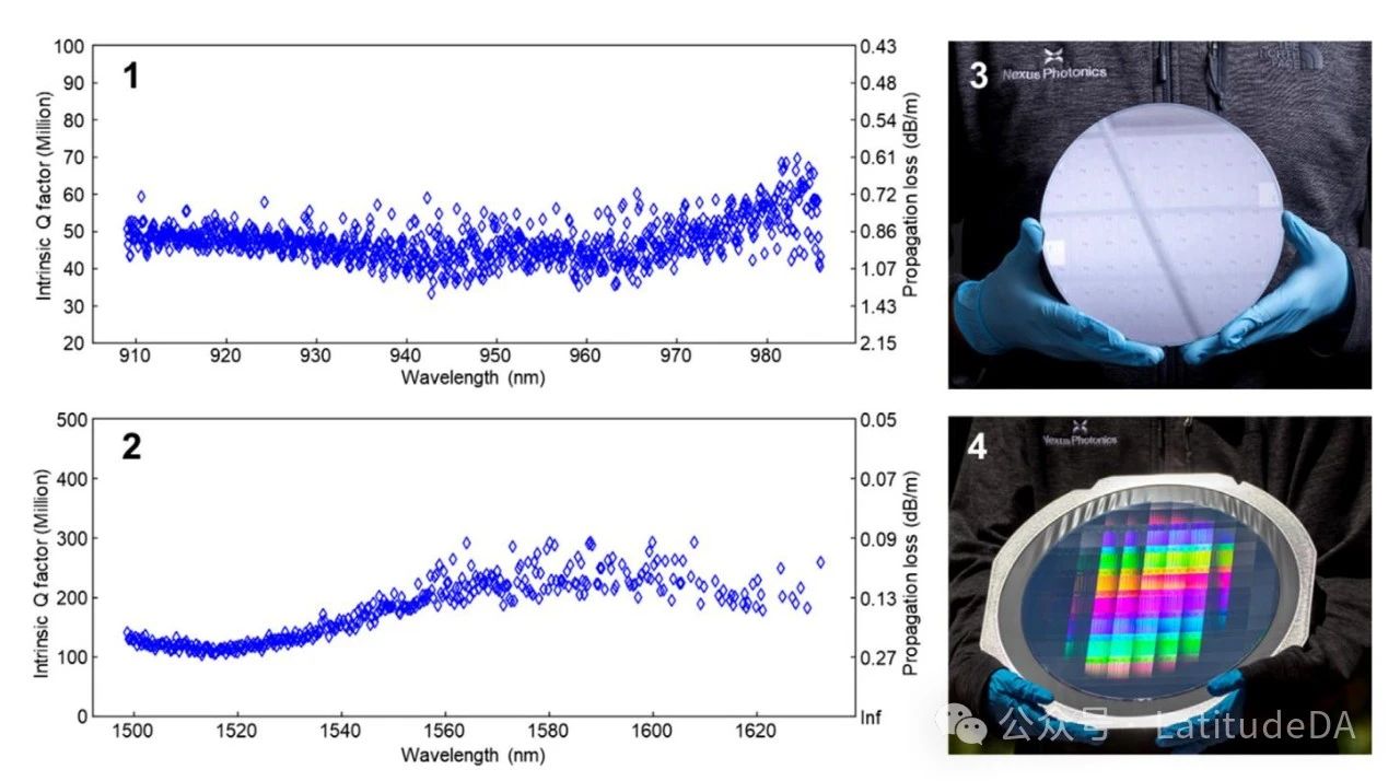 由于具有超低損耗(<0.1 dB/m)、400nm到>2μm波長范圍寬帶透明和與CMOS工藝兼容(可利用硅設(shè)備生態(tài)系統(tǒng)),氮化硅(SiN) 已成為眾多應(yīng)用首選的波導(dǎo)材料。基于超低損耗SiN波導(dǎo)的芯片實(shí)現(xiàn)了III-V微型激光器和光頻梳高效運(yùn)行。SiN的χ(2)和χ(3)非線性效應(yīng)也實(shí)現(xiàn)頻率生成。SiN折射率不易受制程變異影響。300mm晶圓級(jí)可以實(shí)現(xiàn)異常高均勻性和良率。SiN沉積簡單,性能卓越,與電子集成兼容,成本效益最佳,適合大規(guī)模商業(yè)化應(yīng)用。