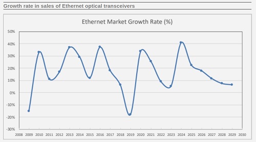 圖:以太網(wǎng)光收發(fā)器市場增長速度(來源:LightCounting)