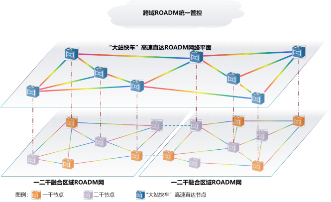 骨干全光網(wǎng)“多層+分域”的立體扁平化網(wǎng)絡(luò)架構(gòu)
