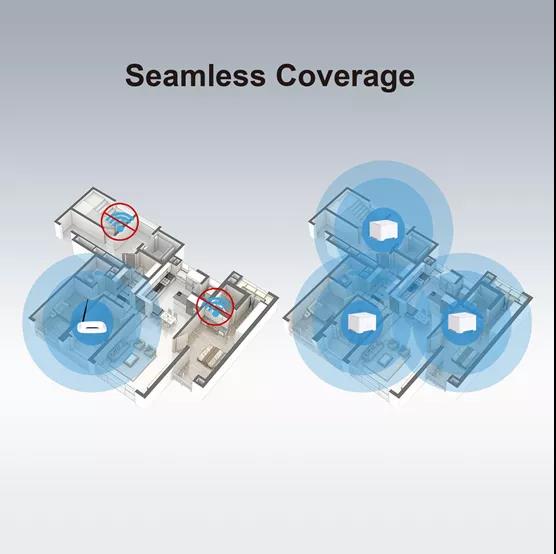 在傳統(tǒng)路由中,自動(dòng)切換信號(hào)需要等待設(shè)備重新聯(lián)網(wǎng),切換卡頓時(shí)間明顯,并且網(wǎng)速也隨之明顯衰減。Wi-Fi mesh是一種創(chuàng)新型的Wi-Fi覆蓋方案,Mesh即網(wǎng)狀網(wǎng)絡(luò),包括一個(gè)主路由及若干從路由,主路由與從路由、從路由之間都可以相互中繼無(wú)線信號(hào),從而擴(kuò)大Wi-Fi網(wǎng)絡(luò)覆蓋范圍、提升用戶(hù)體驗(yàn),即插即用,部署簡(jiǎn)便,信號(hào)穩(wěn)定。