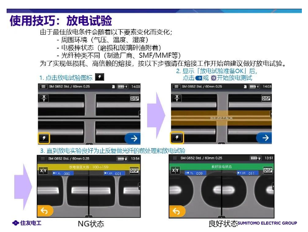 進行放電試驗:更改熔接條件或者更換不同種類的光纖后,請務(wù)必進行放電試驗。