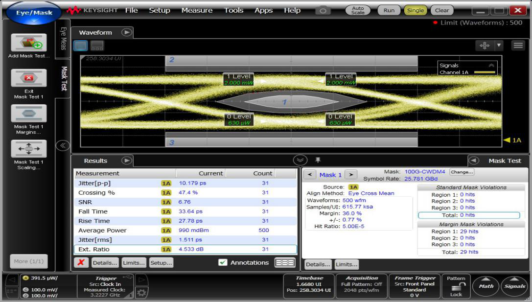 25G Bidi光模塊發(fā)光眼圖如下:
