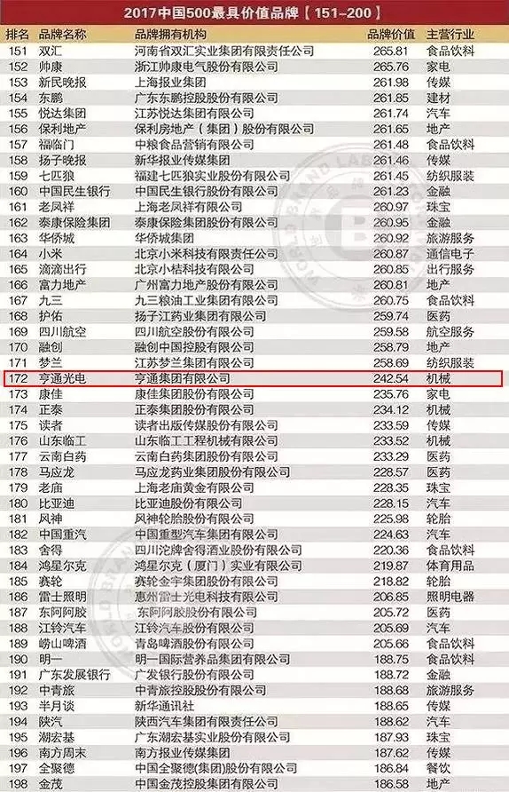 Iccsz訊 近日,2017年“第十四屆世界品牌大會暨中國500最具價值品牌發(fā)布會“在北京隆重召開,由全球五大品牌價值評估機構之一的“世界品牌實驗室”(World BrandLab)發(fā)布的2017年“中國500最具價值品牌”榜單也在會上正式揭曉。亨通集團擁有的“亨通光電”品牌蟬聯該榜單,并以242.54億元的品牌價值位列品牌榜第172名,實現了品牌價值的連年攀升。