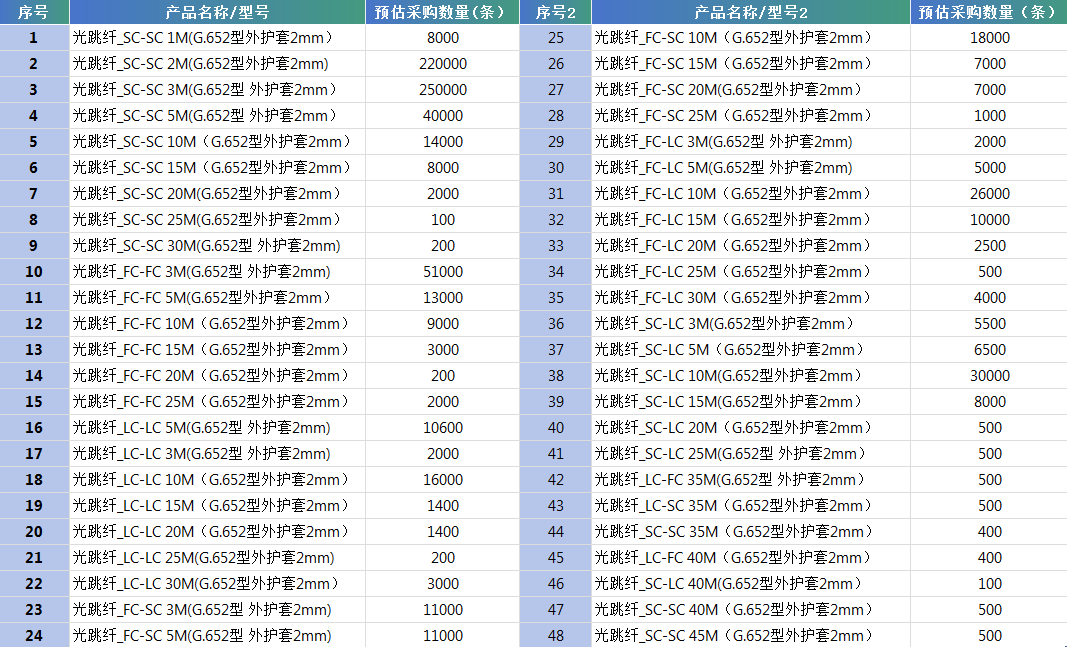 ICC訊 2025年11月18日,中國聯(lián)合網(wǎng)絡通信有限公司湖北省分公司正式發(fā)布2025年11月-2026年4月光跳纖集中采購項目招標公告(招標編號:HBXT-2025-14413),委托湖北信通通信有限公司作為招標代理機構(gòu)。本項目自籌資金已落實,現(xiàn)公開招標采購814000條單模光跳纖,采購預算為176萬元(不含稅),旨在保障工程建設(shè)順利開展。