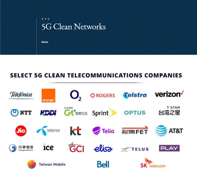 美國國務(wù)院網(wǎng)站此前還公布了一份所謂的5G干凈網(wǎng)絡(luò)名單,宣稱目前全球已經(jīng)有27家運(yùn)營商在5G網(wǎng)絡(luò)建設(shè)中放棄了華為及中興設(shè)備,從而構(gòu)建了5G干凈網(wǎng)絡(luò),確保了最高的安全標(biāo)準(zhǔn)。