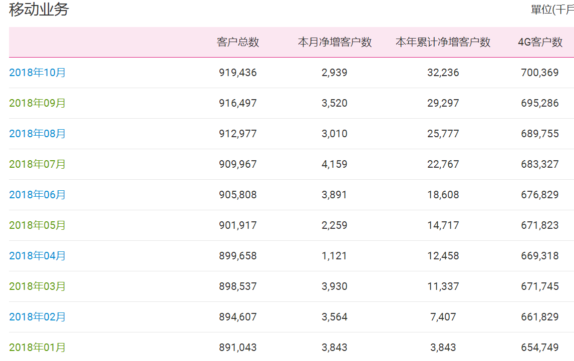 ICCSZ訊 (編輯:Nicole)中國(guó)移動(dòng)公布10月運(yùn)營(yíng)數(shù)據(jù)。數(shù)據(jù)顯示:10月份中國(guó)移動(dòng)的移動(dòng)客戶總數(shù)達(dá)到9.19436億戶,本月凈增客戶數(shù)293.9萬(wàn)戶,本年累計(jì)凈增客戶數(shù)3223.6萬(wàn)戶。其中4G客戶數(shù)凈增508.3萬(wàn)戶,累計(jì)達(dá)到7.00369億戶。
