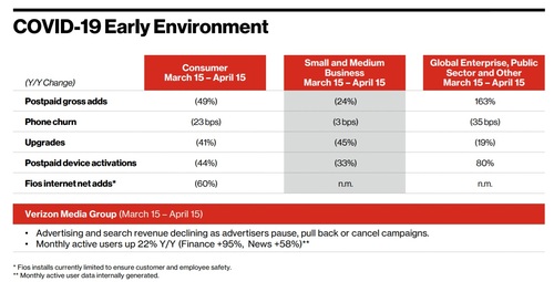 Verizon detailed the early impacts it is seeing from COVID-19.
