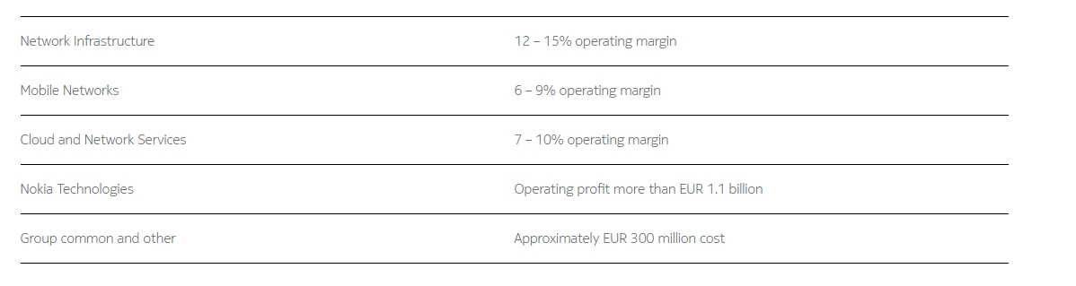 諾基亞集團(tuán)2026年的可比營(yíng)業(yè)利潤(rùn)率目標(biāo)基于業(yè)務(wù)的以下目標(biāo):