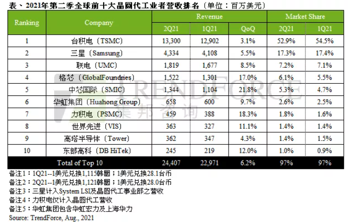 集邦咨詢的最新調(diào)查顯示,全球第二季度前十大晶圓代工業(yè)者產(chǎn)值達(dá) 244.07 億美元,季增 6.2%,自 2019 年第三季以來已連續(xù)八個季度創(chuàng)下歷史新高。