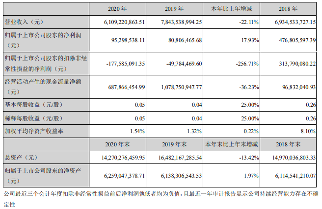 ICC訊 (編輯:Nicole) 海能達(dá)通信股份有限公司(以下簡稱“海能達(dá)”或“公司”)發(fā)布2020 年年度報(bào)告稱:2020年度實(shí)現(xiàn)營收61.09億元,同比下降22.11%;凈利潤9530萬元,同比增長17.93%。經(jīng)營活動產(chǎn)生的現(xiàn)金流量凈額6.88億元,連續(xù)三年大幅為證。