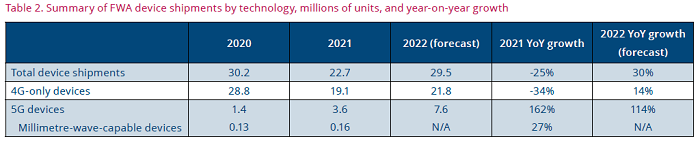 3. 2022年,FWA CPE出貨量預計將增長33%至2200萬臺,超過2020年的創(chuàng)紀錄出貨量。