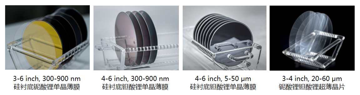 晶正主營產(chǎn)品為3、4、6英寸300 nm-900 nm鈮酸鋰單晶薄膜;4、6英寸300 nm-900 nm鉭酸鋰單晶薄膜;5-50 um硅上鈮酸鋰單晶薄膜;5-50um硅上鉭酸鋰單晶薄膜;20-60μm超薄鈮酸鋰、鉭酸鋰晶片等,并提供離子注入代工服務(wù)。晶正生產(chǎn)的鈮酸鋰、鉭酸鋰單晶薄膜產(chǎn)品,晶格結(jié)構(gòu)為單晶,保持了體材料的物理性質(zhì)具有優(yōu)異的表面粗糙度以及厚度均勻性。