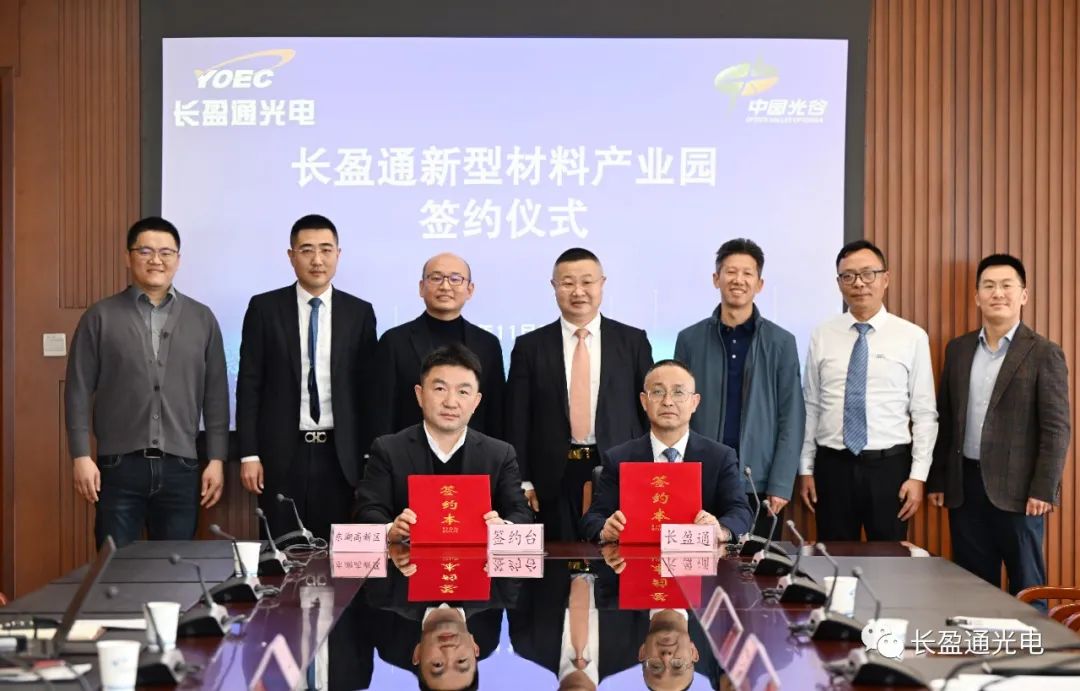 ICC訊 2023年11月20日上午,長(zhǎng)盈通新材料產(chǎn)業(yè)園項(xiàng)目簽約儀式在東湖新技術(shù)開(kāi)發(fā)區(qū)管委會(huì)成功舉行。東湖高新區(qū)黨工委委員、辦公室主任潘青煜,智造園常務(wù)副主任吳迎春,智造園副主任羅勇,東湖高新區(qū)投促局副局長(zhǎng)胡波,東湖高新區(qū)宣傳部副部長(zhǎng)肖輝,長(zhǎng)盈通董事長(zhǎng)兼總裁皮亞斌,戰(zhàn)略發(fā)展中心總經(jīng)理曹文明出席簽約儀式。