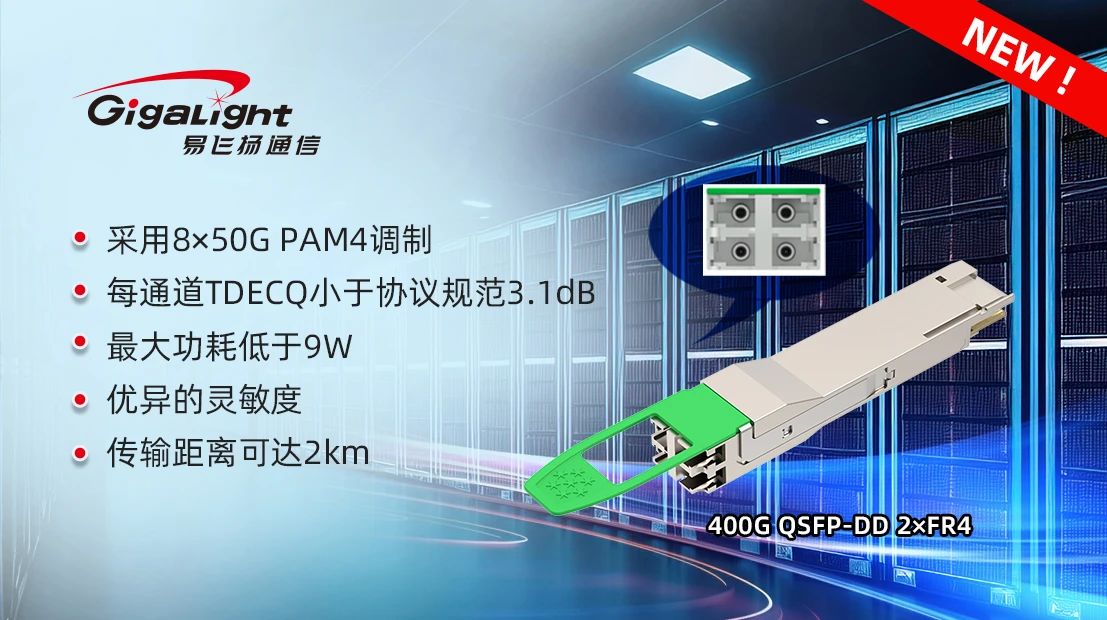 ICC訊 追尋最優(yōu)的400G數(shù)據(jù)中心模型一直是行業(yè)的熱點(diǎn)和焦點(diǎn),易飛揚(yáng)近日宣布推出一款依托50G PAM4 DML技術(shù)平臺的400G QSFP-DD 2×FR4數(shù)據(jù)中心光模塊,該產(chǎn)品為客戶的數(shù)據(jù)中心架構(gòu)提供了新選項。