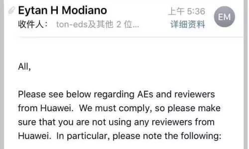 問:在網(wǎng)傳的這封郵件里提到,如果繼續(xù)讓華為員工擔(dān)任審稿人或編輯,可能會產(chǎn)生嚴(yán)重的法律影響。這一說法是夸大其詞,還是說真的會有這么一回事?