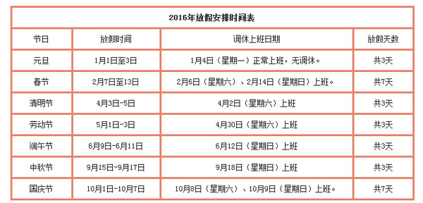 文章標(biāo)題:2016年休假安排出爐共放假19天 難拼大假