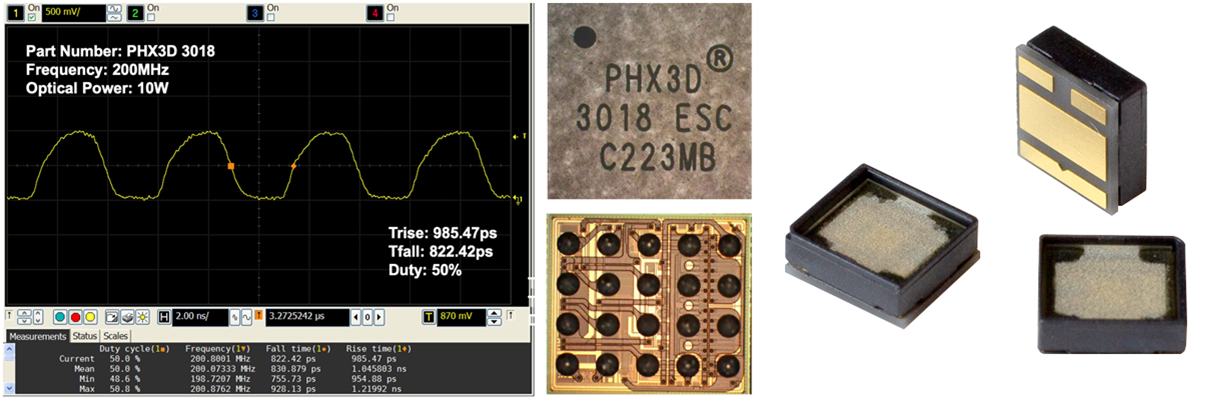 關(guān)于PHX3D3018:業(yè)界首款可量產(chǎn)的多結(jié)高功率3D-ToF驅(qū)動(dòng)芯片,也是目前業(yè)界唯一一款可在200M調(diào)制頻率下,輸出10W光功率,并同時(shí)維持小于1ns的光波形上升下降沿時(shí)間,且滿足Class-1人眼安全標(biāo)準(zhǔn)的3D-ToF驅(qū)動(dòng)芯片,芯片大小僅為2mm x 1.8mm。PHX3D3018還支持自動(dòng)功率(APC)和自動(dòng)電流(ACC)模式,以及多種光波形調(diào)整功能。光梓科技將為客戶提供完備的PHX3D3018電路參考設(shè)計(jì),幫助客戶快速上手進(jìn)行3D-ToFTx的設(shè)計(jì)。該芯片將于2021年Q4量產(chǎn),并開始向北美某大型客戶(包括VR設(shè)備、智能家居、工業(yè)智能設(shè)備等)批量出貨。