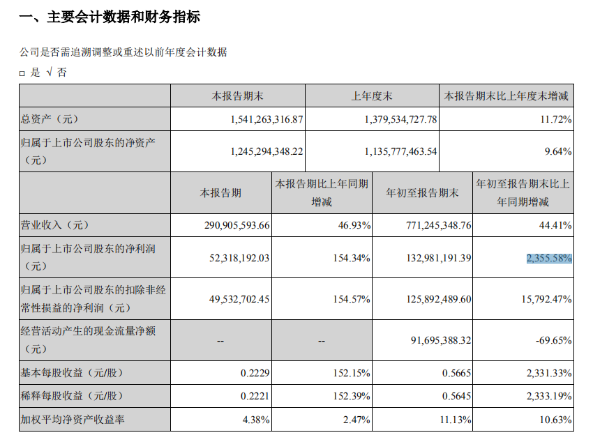 ICCSZ訊 10月29日,成都新易盛通信技術(shù)股份有限公司(證券代碼:300502)公布了2019年第三季度報告。報告顯示,新易盛報告期內(nèi)營業(yè)收入為2.9億元,同比增長46.93%;歸屬上市公司股東的凈利潤為0.52億元,同比增長154.34%。2019年1-9月營業(yè)收入為7.71億元,同比上年增長44.41%;歸屬上市公司股東凈利潤為1.33億元,同比增長2355.58%。