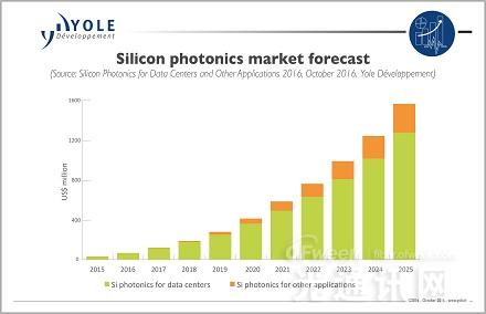 來(lái)自Yole的Eric Mounier表示:“硅光子已經(jīng)達(dá)到了大規(guī)模增長(zhǎng)之前的臨界點(diǎn)。”