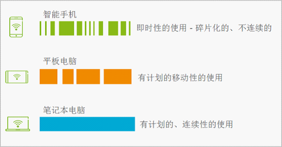 智能手機改善了互聯(lián)網(wǎng)體驗,同時提升了便攜性與電池續(xù)航能力,多用于有計劃的移動性的使用(如下圖)。
