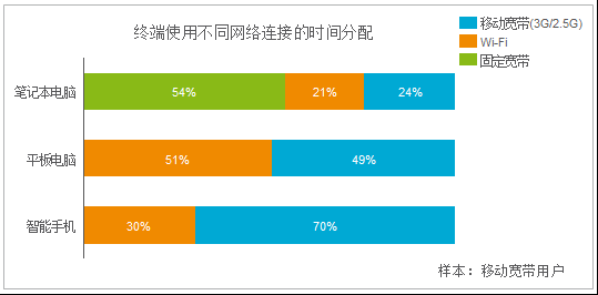 移動寬帶網(wǎng)絡(luò),30% 的時間是用于Wi-Fi連接(如下圖)。