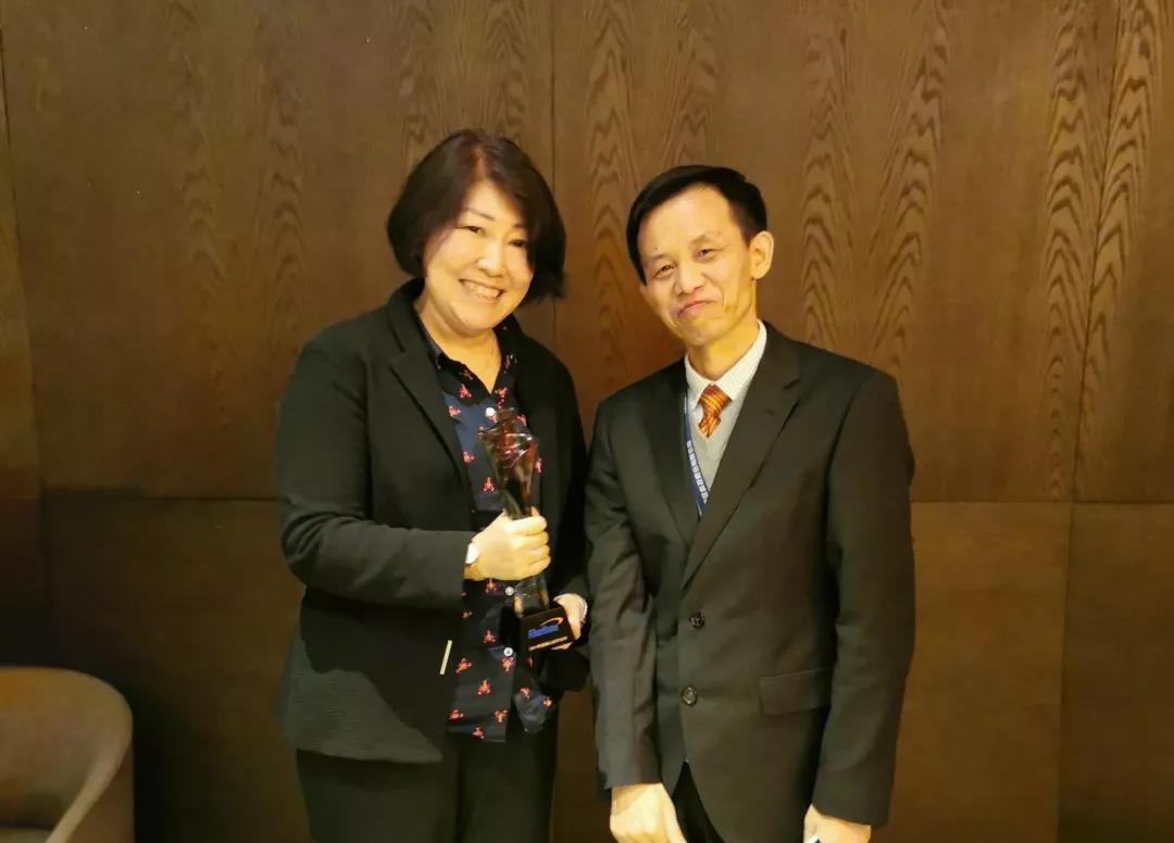 圖:索爾思光電中國(guó)區(qū)Sales VP劉女士手握獎(jiǎng)杯,與烽火認(rèn)證與采購(gòu)中心總經(jīng)理譚國(guó)華譚總合影