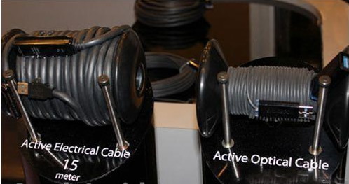 Macworld/iWorld 2013展會(huì)上康寧展示的 Thunderbolt 和 USB 排線,長(zhǎng)度分別為100 米和30 米,除了更長(zhǎng)及高速度外,排線的直徑也較??祵幑痉謩e使用傳統(tǒng)機(jī)械硬盤(pán)和SSD固態(tài)硬盤(pán)的電腦進(jìn)行了速度測(cè)試,但是機(jī)械硬盤(pán)由于讀寫(xiě)限制,所以得不到理想的結(jié)果的。其中USB 3.0的光纜最長(zhǎng)為30米,而Thunderbolt光纜最長(zhǎng)可達(dá)100米。