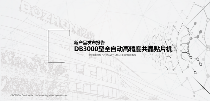 ICC訊 12月16日,高端自動(dòng)化和數(shù)字化裝備制造商博眾精工科技股份有限公司(簡(jiǎn)稱博眾精工)宣布,其新型全自動(dòng)高精度共晶貼片機(jī)DB3000正式量產(chǎn),該機(jī)型貼片精度可穩(wěn)定維持在正負(fù)3微米之間,助力高速光通信、光電子與傳感、微波射頻、MEMS等高精度半導(dǎo)體后道工藝,尤其滿足高端光通信芯片與器件柔性自動(dòng)化封裝生產(chǎn),響應(yīng)光通信應(yīng)用發(fā)展對(duì)高精度技術(shù)需求,并打破國(guó)外在高端貼片設(shè)備領(lǐng)域的壟斷。