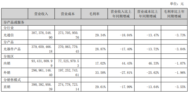 ICC訊 8月18日,深圳太辰光通信股份有限公司(簡稱“太辰光”,300570)發(fā)布2023年半年度報告。2023年上半年,太辰光實現(xiàn)營業(yè)收入3.9億元,同比下降17.99%;歸屬于上市公司股東的凈利潤7166.32萬元,同比下降24.72%。