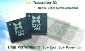 主營(yíng)產(chǎn)品是155Mbps~10Gbps的高速收發(fā)芯片組:跨阻放大器TIA(Transimpedance Amplifier)、限幅放大器LA(Limiting Amplifier)、激光驅(qū)動(dòng)器LDD(Laser Driver)等。155Mbps、1.25Gbps的TIA、LA、LDD均已量產(chǎn),并得到光模塊廠商的大批量采用。2.5Gbps的高速收發(fā)芯片組已完成小批量試樣,即將量產(chǎn)。應(yīng)用于GEPON/GPON的突發(fā)模式收發(fā)芯片也正在積極研發(fā)中,預(yù)計(jì)2009年下半年量產(chǎn)。