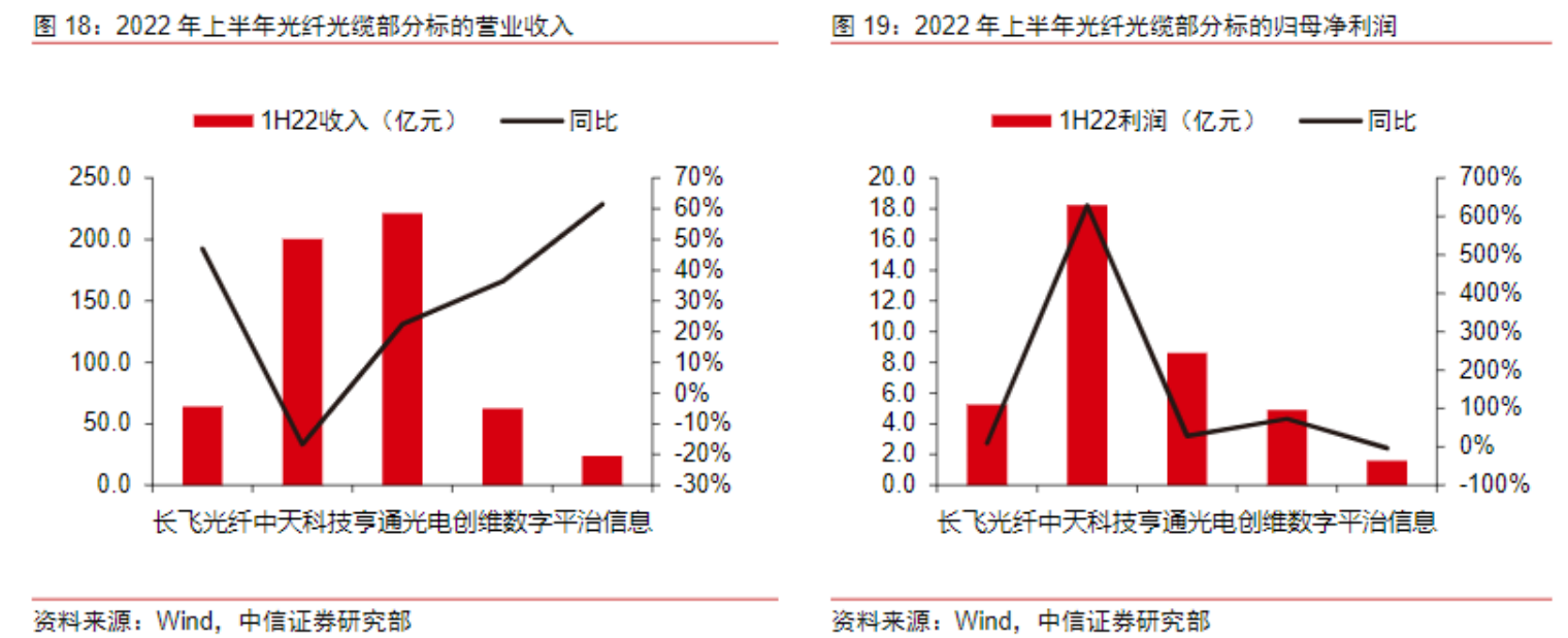 此外,光纖光纜中報業(yè)績亦有可圈可點之處。據《科創(chuàng)板日報》統(tǒng)計,盡管營收表現一般,但多家光纖光纜制造商上半年實現凈利潤同比倍增,分別為中天科技、富通信息、特發(fā)信息。另外,雖然長飛光纖凈利同比僅增加9.65%,但其扣非凈利潤同比增加188%,且Q2單季度扣非歸母凈利接近去年全年水平。
