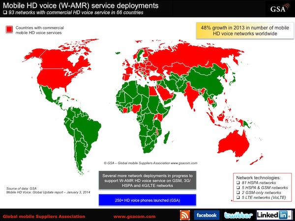 ICCSZ訊 日前,一份來自GSA(全球移動供應(yīng)商協(xié)會)的新報告指出高清語音服務(wù)對全球移動網(wǎng)絡(luò)供應(yīng)商日益重要,而在2013年移動運營商提供的高清語音服務(wù)的數(shù)量增加了48%。