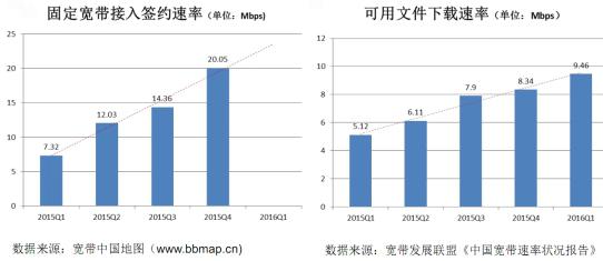 ICCSZ訊 日前,在某公開場(chǎng)合,工信部中國信息通信研究院標(biāo)準(zhǔn)所副所長敖立稱,過去一年,我國寬帶網(wǎng)絡(luò)提速效果非常明顯,我國固定寬帶用戶的簽約接入速率由2015年第一季度的7.32Mbps提升至年末的20.05Mbps,提升高達(dá)2.74倍;文件下載速率由5.12Mbps提升至16年一季度的9.46Mbps,提升達(dá)1.85倍。