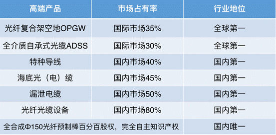 聚焦產(chǎn)品,中天充分發(fā)揮了企業(yè)的創(chuàng)新優(yōu)勢,各類高端產(chǎn)品市場占有率行業(yè)領(lǐng)先,居國際或國內(nèi)第一。(如下圖)