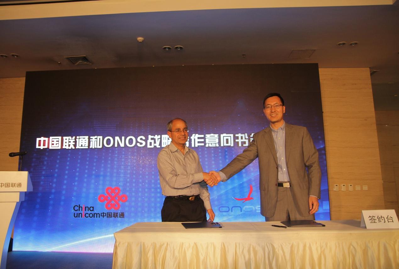 圖為中國聯(lián)通和ONOS簽署戰(zhàn)略合作意向書