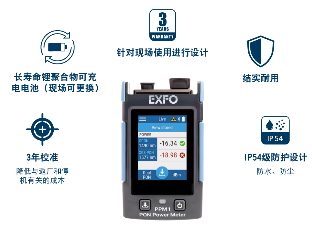 PPM1設(shè)計用于在現(xiàn)場廣泛使用,自始至終都可以提供一流的光學(xué)性能。這款測試儀和其它的EXFO產(chǎn)品一樣結(jié)實耐用,擁有成本低,采用IP54級防護設(shè)計,可防塵、防水,成為非常可靠的設(shè)備。