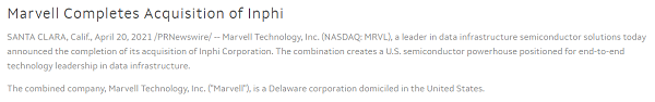 2021年4月20日,Marvell正式完成收購(gòu)Inphi。