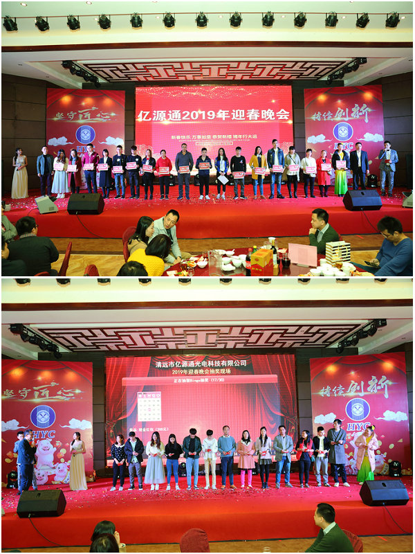 ICCSZ訊 辛勤來自山川湖海,篤定走向國際舞臺(tái)。2019年1月26日,臘盡春回,清遠(yuǎn)市億源通光電科技有限公司(簡稱“清遠(yuǎn)億源通”)2019迎新晚會(huì)在清遠(yuǎn)市嘉興漁村圓滿舉辦!來自源通的供應(yīng)商及媒體朋友等嘉賓匯聚一堂,見證清遠(yuǎn)億源通喬遷清遠(yuǎn)的五周年大步成長。迎新晚會(huì)在一片熱鬧激昂的氣氛中,伴隨著一輪輪頒獎(jiǎng)、抽獎(jiǎng)與曲藝舞蹈表演的穿插進(jìn)行,晚會(huì)氣氛盡顯歡樂祥和。