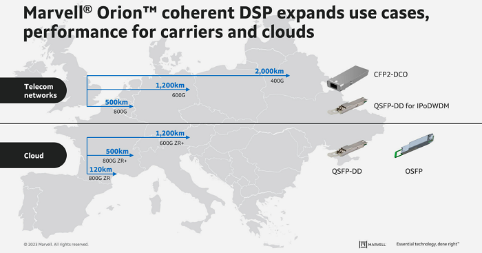 Orion擴(kuò)大了在更多用例中部署基于DSP的相干模塊的機(jī)會(huì),包括800Gbps城域網(wǎng)絡(luò)、600Gbps區(qū)域網(wǎng)絡(luò)、400Gbps長(zhǎng)途網(wǎng)絡(luò)和800Gbps數(shù)據(jù)中心互連。