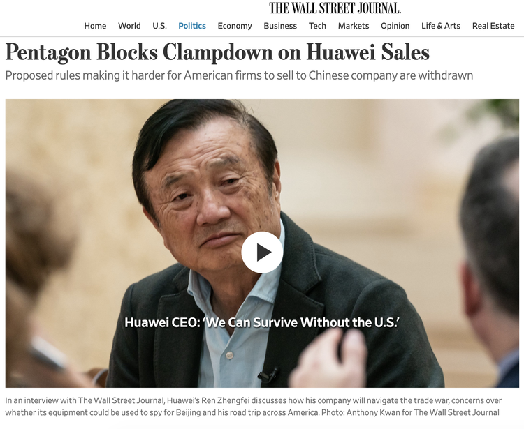 為了修補這一漏洞,美國商務(wù)部擬議的新條文試圖將這一數(shù)字減小到10%。這樣的變化將使限制范圍擴展到敏感類型的技術(shù)之外,包括廣泛使用的美國軟件,芯片和其他組件。但是,商務(wù)部的這一提議遭到了其他部門的聯(lián)合反對。五角大樓:「維護安全」很重要,但也要養(yǎng)活企業(yè)目前,華為已經(jīng)成為全球第一大電信設(shè)備供應(yīng)商、第二大手機制造商,其2019年的銷售額超過1200億美元,同比增長18%。但這家公司和美國相關(guān)的業(yè)務(wù)卻越來越少。美國國防部擔(dān)心,斷供華為將降低美國企業(yè)的利潤,從而減少企業(yè)對研發(fā)的投入,不利于美國企業(yè)的長遠發(fā)展。