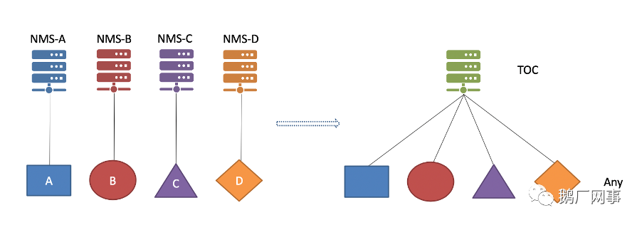 TOOP可以解決什么呢?傳統(tǒng)的波分系統(tǒng)就好比,波分廠商自己修建了自己的高速公路,且這條高速公路只能跑自己廠的貨車,其他廠商的貨車即使能駛?cè)?,也無法被監(jiān)控和管理系統(tǒng)所識別,導(dǎo)致維護(hù)這條高速公路交通的工作變得十分麻煩,如果車輛發(fā)生召回事件或者批次問題時(shí),面臨很大的系統(tǒng)穩(wěn)定隱患。TOOP呢改變了這個(gè)游戲規(guī)則,我們自己修建了可以支持任意貨車的高速公路(OPC-4),并且通過對每輛貨車簡單的加裝標(biāo)準(zhǔn)化監(jiān)控協(xié)議(Tencent Yang module)實(shí)現(xiàn)了多廠商車輛在我們的道路上安全有序的行駛,在TOC(騰訊光網(wǎng)絡(luò)控制器)的指揮下讓指揮調(diào)度人員(NOC運(yùn)營人員)可以快速、安全的無差異化的監(jiān)控不同廠商的貨車并將貨物送抵目的地。這就是TOOP第一階段所解決的問題,無論下面硬件是來自“方塊、圓圈、三角、菱形”,都可以無差異化的在統(tǒng)一的TOOP控制器下管理,“軟硬解耦,大道至簡!”即,傳輸系統(tǒng)在TOOP框架下是一個(gè)開放的場景,光層與電層完全分離,需求量與成本最高的電層產(chǎn)品在TOC(控制器)的協(xié)助下通過打破封閉從而將單一來源的風(fēng)險(xiǎn)解除。同時(shí)TOC配合Tencent Yang的管控模型,將差異化在控制器與設(shè)備北向?qū)用嫱耆帘?,極大的減少了我們對不同供應(yīng)商產(chǎn)品的學(xué)習(xí)成本。
