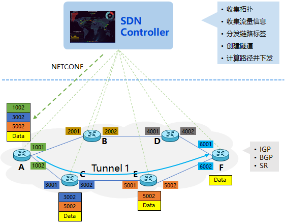 轉(zhuǎn)發(fā)路徑的冗余性:控制器預(yù)先為隧道計(jì)算和下發(fā)備份路徑,當(dāng)主路徑出現(xiàn)故障時(shí)流量可在百毫秒自動(dòng)切換至備路徑繼續(xù)轉(zhuǎn)發(fā),整個(gè)過程業(yè)務(wù)不感知;