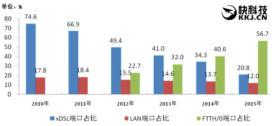 上周,工信部運(yùn)行監(jiān)測(cè)協(xié)調(diào)局發(fā)布了《2015年通信運(yùn)營(yíng)業(yè)統(tǒng)計(jì)公報(bào)》,公報(bào)顯示,在互聯(lián)網(wǎng)寬帶接入方面,2015年底達(dá)到2.134億戶,同比增長(zhǎng)1288.8萬戶;其中xDSL用戶為5021萬,下降3917.7萬;FTTx用戶達(dá)1.2億戶,增加5140.8萬戶,超過xDSL成主流。