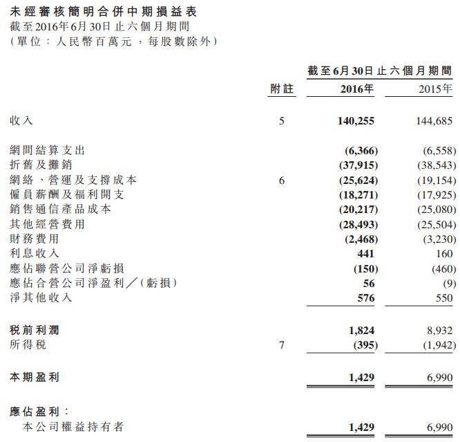 ICCSZ訊 中國(guó)聯(lián)通昨日下午公布了2016年上半年業(yè)績(jī)報(bào)告。