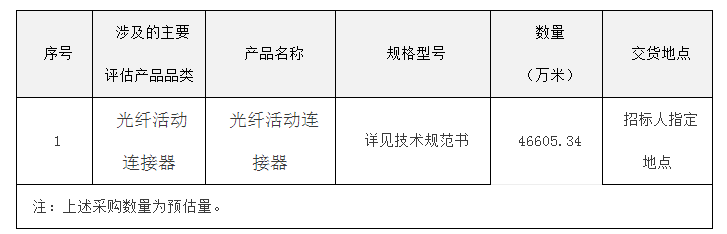 ICC訊 中國電信光纖活動連接器產品(2023年)集中采購項目已批準,采購內容為中國電信集團有限公司和中國電信股份有限公司及其下屬子公司、分公司未來兩年所需的光纖活動連接器產品,采購數(shù)量為46605.34萬米,不劃分標包。